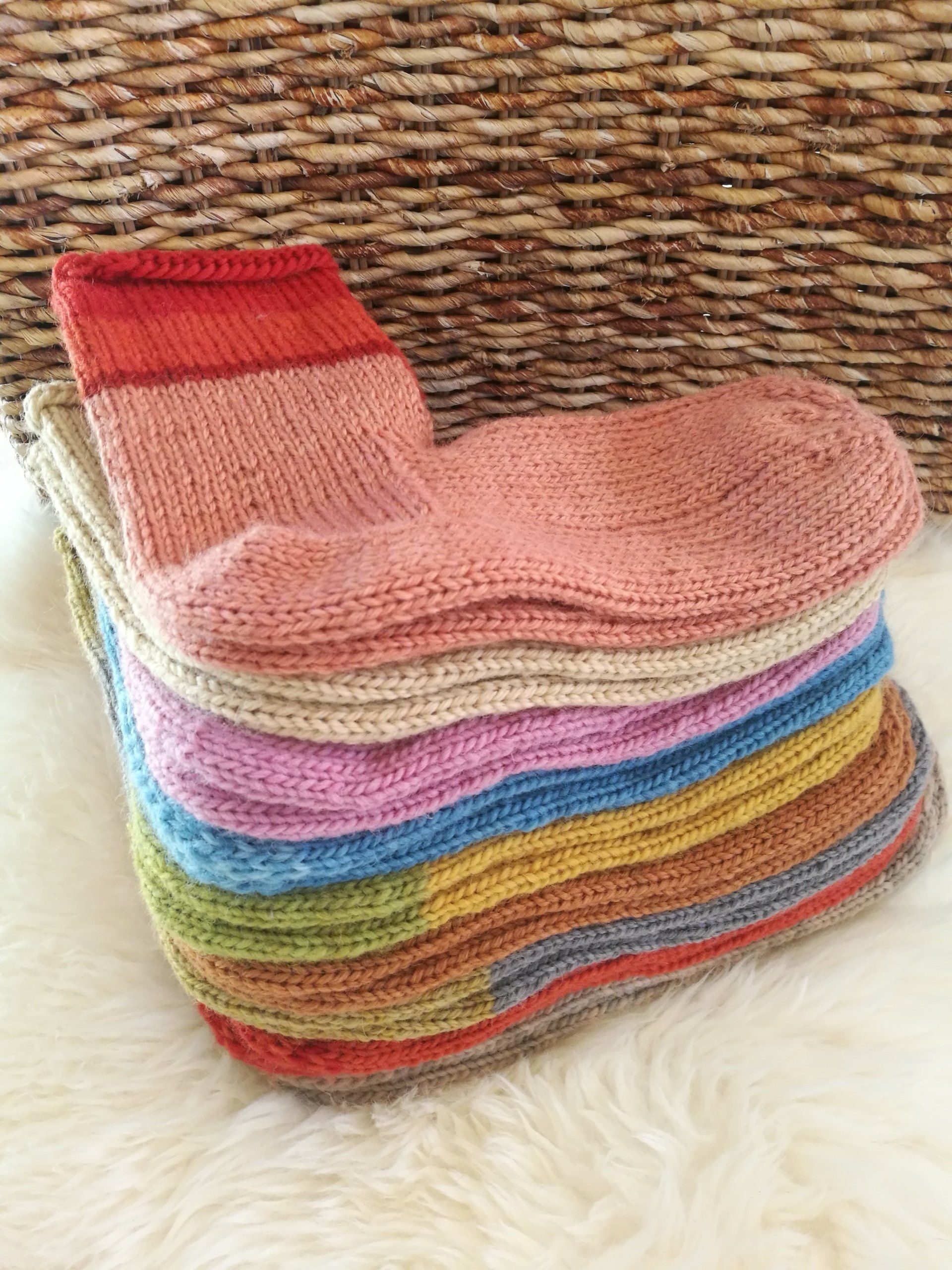 Les Romains portaient-ils des chaussettes ? Oui ! Pour preuve cette pièce de fouille trouvée en Egypte, conservée par le sable du désert. Ces chaussettes coptes ressemblent à des chaussettes japonaises avec cette séparation au milieu des orteils, car les Romains installés dans cette région de l'Empire portaient des espèces de tongues en cuir pour marcher dans le sable. Elles sont réalisées en tricot mais avec une seule aiguille (méthode appelée naalbinding car reprise ensuite par les peuples scandinaves). J'ai réalisé une paire de chaussettes visuellement ressemblantes avec la technique moderne de tricot avec 5 aiguilles double pointes, car cela va beaucoup plus vite ! Et sans la séparation des orteils... A retrouver dans ma boutique !