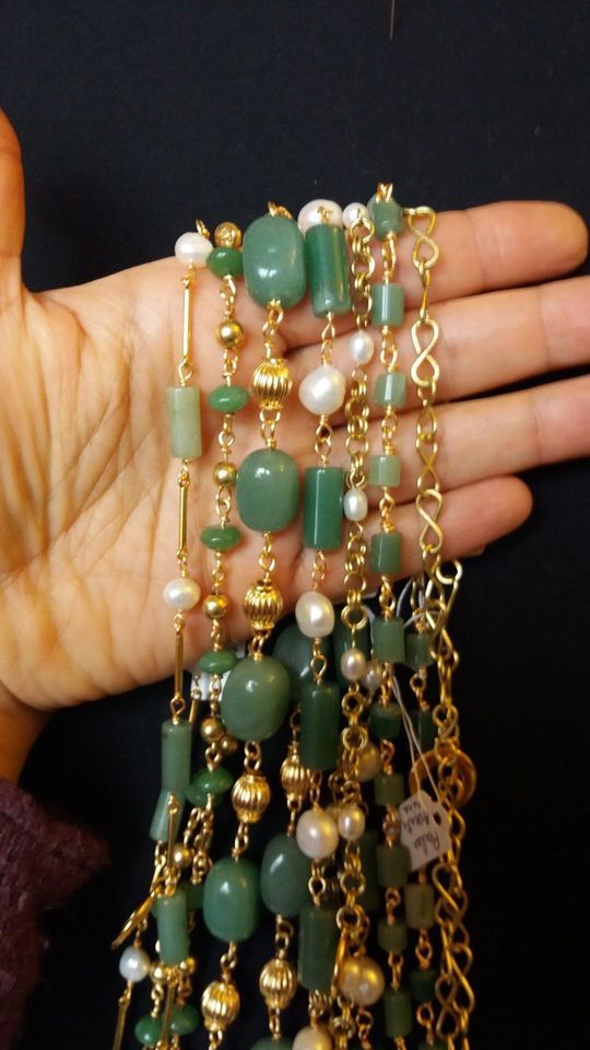 L'éruption du Vésuve au premier siècle fut une catastrophe pour les Romains mais une bénédiction pour les futurs archéologues ! J'ai reproduit quelques bijoux trouvés à Pompei et Herculanum : les bijoux originaux sont en or, perles et émeraudes. Cette association est très fréquente à l'époque romaine. Les perles de cette époque (I° siècle) proviennent souvent de la Mer Rouge et sont rarement bien rondes ! Les émeraudes (qui selon les critères actuels sont de mauvaise qualité car très peu transparentes ) pouvaient provenir de plusieurs gisements antiques : la Haute Egypte, l'Autriche et certainement la Sibérie (issues du commerce avec les Scythes) et l'Inde. Les émeraudes sont naturellement en forme de prismes, que les orfèvres romains retaillaient sommairement. On a trouvé des bijoux perles / émeraudes partout dans l'empire romain : Gaule, Germanie, Bretagne... Pour mes copies, j'utilise des perles d'eau douce, et pour remplacer les émeraudes des perles d'Aventurine, d'agate verte ou de jade. D'autres éléments sont caractéristiques de ce dépôt de fouilles : des pendentifs en forme de lunule, symbole féminin par excellence qui relie aux énergies de la lune, protectrice de la fertilité. On voit des maillons en or en forme de 8, des perles rondes et en forme d'olive en or lisse, des boucles d'oreille en demi-sphère très typiques... Ensuite, à partir de ces éléments caractéristiques, j'invente des variantes avec d'autres pierres gemmes utilisées à cette époque (cornaline, grenats, améthystes, calcédoine, lapis lazuli ...) en mélangeant les particularités pour créer d'autres bijoux compatibles avec cette période. A retrouver dans ma boutique !