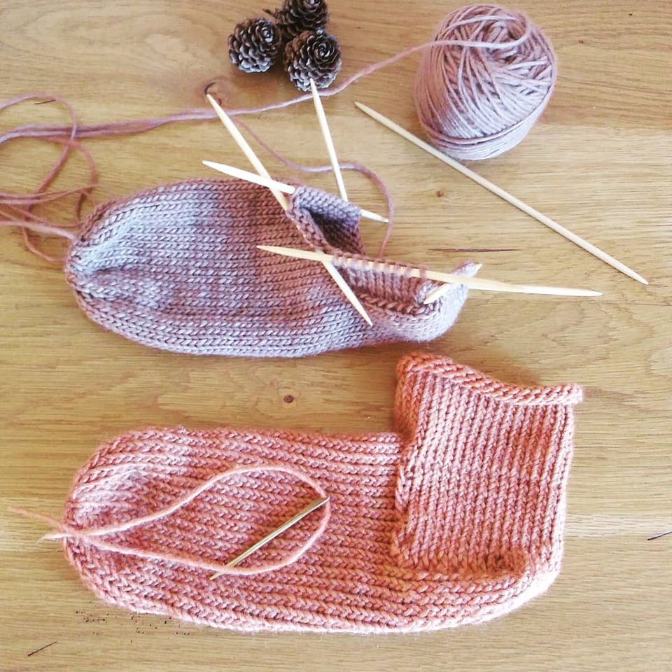 J'utilise donc ce point "copte", simple et élégant, pour réaliser une paire de chaussettes ... et je m'aperçois du temps énorme demandé par cette technique ! J'ai donc opté pour le tricot aux aiguilles car il permet de raccourcir le temps de réalisation (et donc le prix de revient). Mais je conserve cette technique de point "copte" pour réaliser les bonnets, car je peux utiliser une laine plus épaisse, ce qui réduit le temps de réalisation.